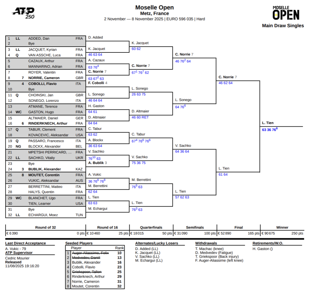 La cinquième tête d’affiche a été annoncée vendredi en fin d’après-midi par la direction du Moselle Open. Rendez-vous désormais ce mardi soir pour la publication de la liste des joueurs inscrits à cette 19e édition.